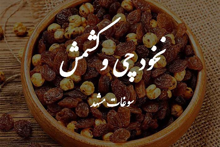 شما هم وقتی به مشهد رفتید، هر چقدر زعفران و نبات و انگشتر خریدید، باز هم یک کیسه نخودکشمش درجه یک از بازار رضا، بازار ۱۷ شهریور یا سرای عزیزیان بردارید، به ضریح بمالید و با خودتان ببرید. چون وقتی درِ خانه را باز کنید و عطر نخود دو آتیشه و شیرینی کشمش سبز فضای خانه را پر کند، همه میفهمند که شما واقعاً از مشهد برگشتهاید.